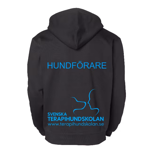 Huvtröja med terapihundskolans tryck på ryggen samt fram på bröstet. Med texten "hundförare" på ryggen syns du i ditt arbete som tjänstehundsförare. Finns i turkos med vitt tryck alternativt svart med turkost tryck.