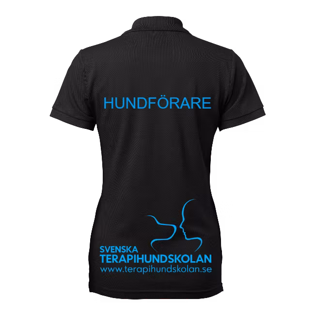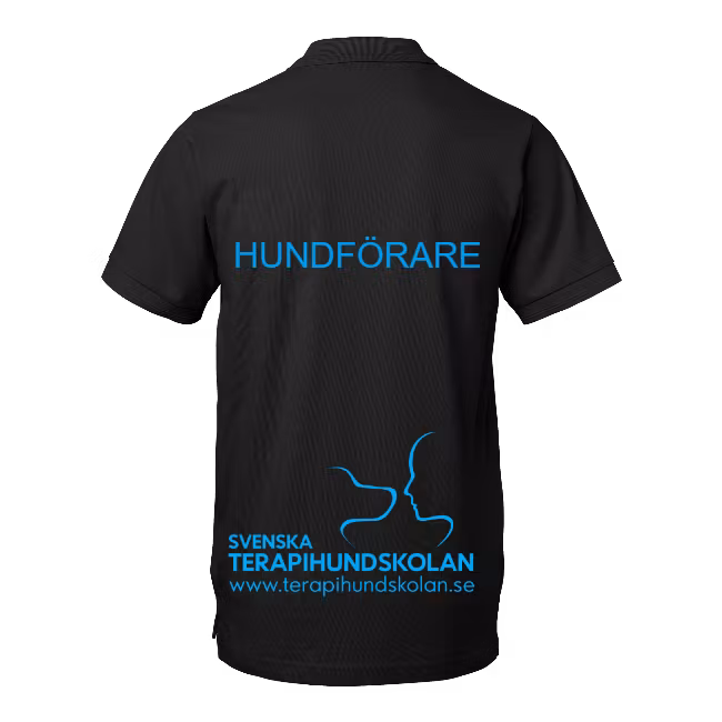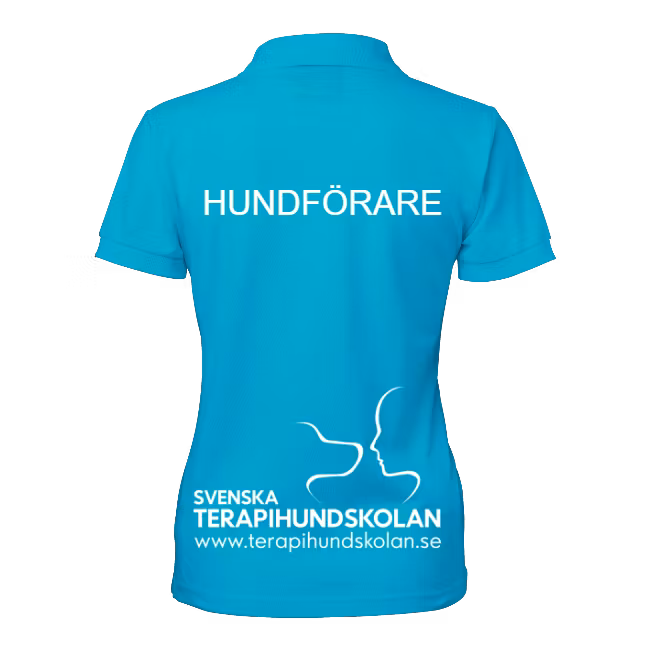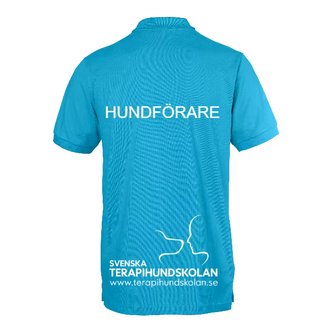 Piké med terapihundskolans tryck på ryggen samt fram på bröstet. Med texten "hundförare" på ryggen syns du i ditt arbete som tjänstehundsförare. Finns i turkos med vitt tryck alternativt svart med turkost tryck.